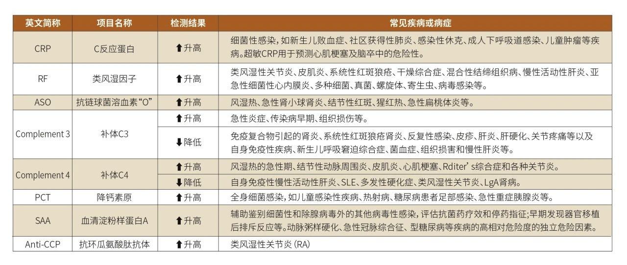 在常见的血液检测指标中,除常规的血常规、C反应蛋白(CRP)检测外,另一炎症指标——血清淀粉样蛋白A(SAA)的检测在该类疾病的诊疗中敏感性备受关注。