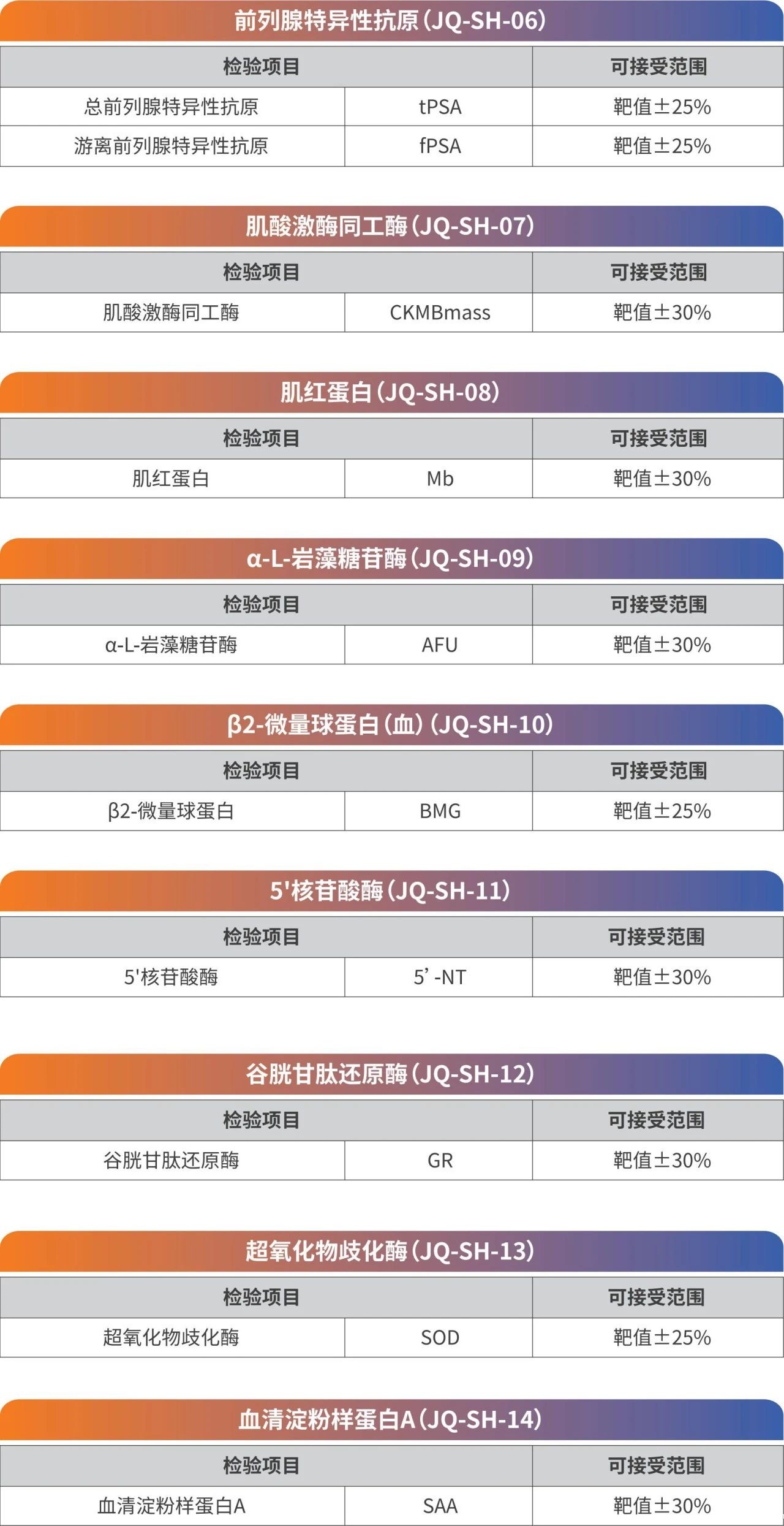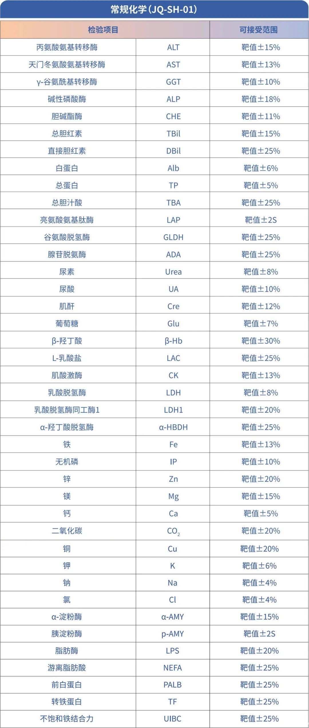 (1) 评价项目:γ-谷氨酰基转移酶(GGT)、碱性磷酸酶(ALP)、乳酸脱氢酶(LDH)、肌酸激酶(CK)、α-淀粉酶(α-AMY)、总蛋白(TP)、肌酐(Cre)、尿素(Urea)、尿酸(UA)、葡萄糖(Glu)、同型半胱氨酸(Hcy)、总胆固醇(CHO)等;