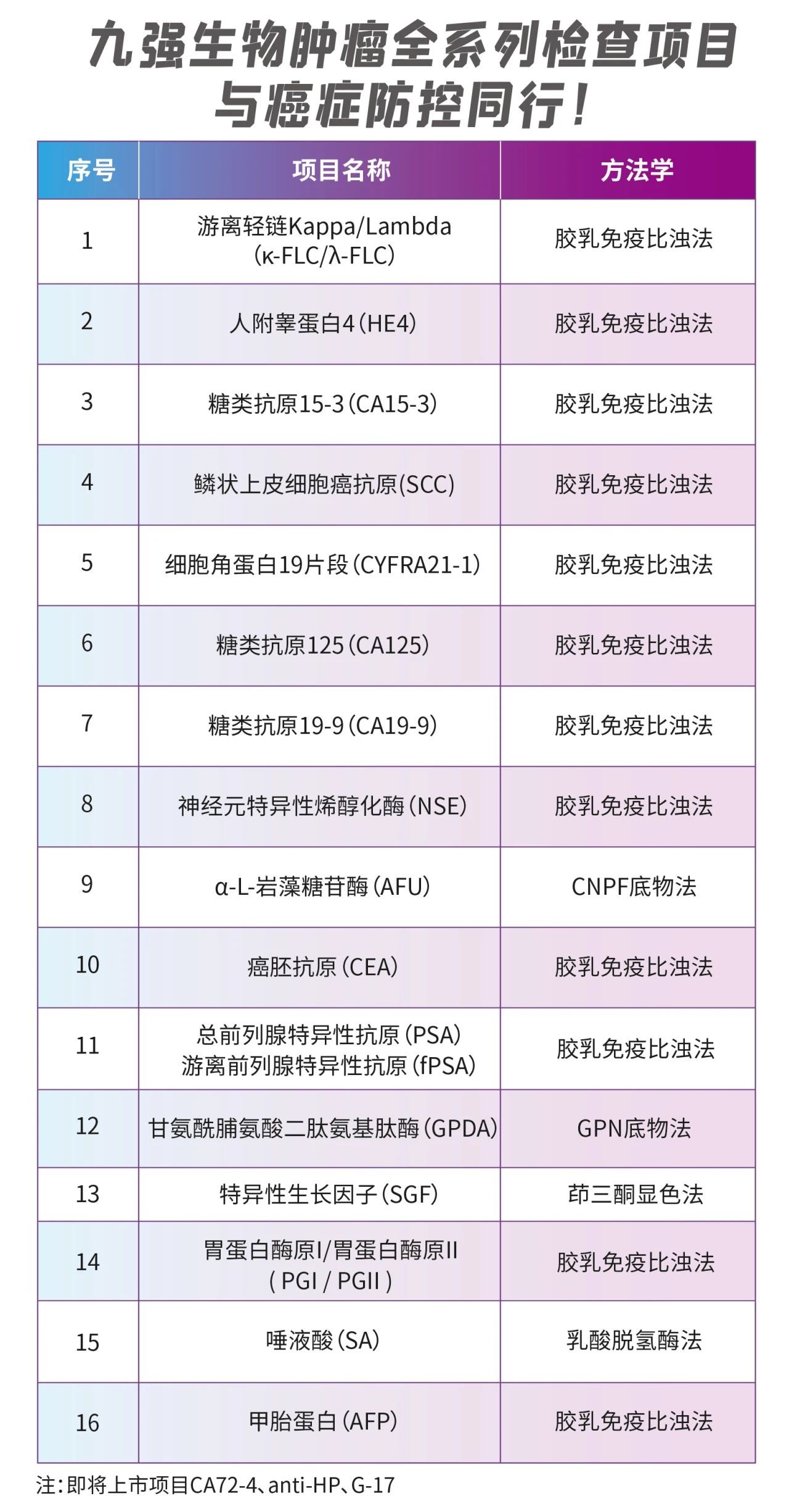 ① 全面的肿瘤项目菜单,涵盖常见肿瘤的标志物