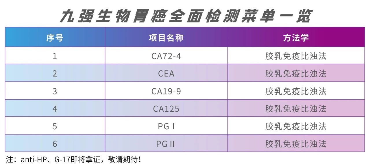 目前用于胃癌临床诊疗的实验室手段,多为肿瘤标志物(TM)检测,风险筛查TM:HP、PG、G-17和用于预后评估及术后监测的TM:CEA、CA19-9、CA72-4、CYFRA21-1和β-HCG等。其中,CEA、CA19-9、CA72-4还可作为胃癌辅助诊断TM,虽然单独检测对极早期胃癌的诊断价值有限,但联合检测可降低胃癌漏诊率。