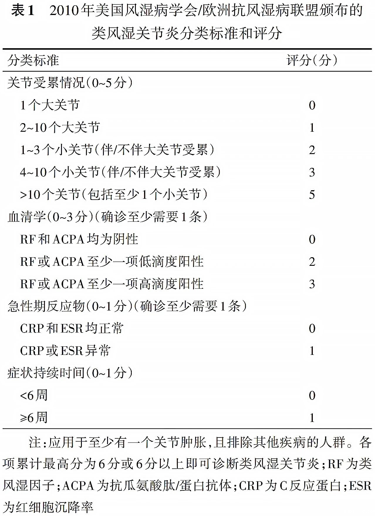我国《类风湿关节炎诊疗规范》及美国风湿病学会/欧洲抗风湿病联盟颁布的RA分类标准,均推荐将Anti-CCP检测作为确诊RA的标准之一[3]。
