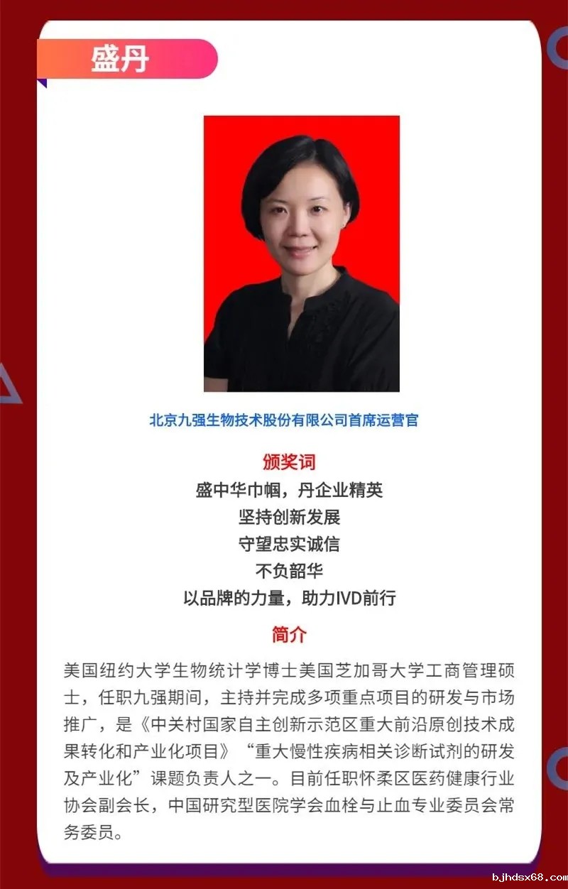为表彰和铭记、激励和感谢为人民健康事业做出贡献的我国体外诊断生产和流通企业家们的辛勤努力及拼博奉献精神。2020年“中国体外诊断产业领军人物”评选活动于2020年12月9日正式启动。活动共收到业界知名专家,行业协会推荐的32位企业精英申报参评。依据评选办法,联合发起单位筛选出符合评选条件的候选人14名。经过层层评选与投票,最终仅有8位同志榜上有名。其中世界杯直播首席运营官盛丹女士获此殊荣!
