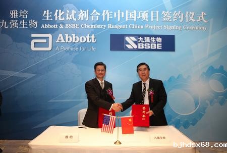 Beijing Strong Biotechnologies,Inc,(Abbreviated to BSBE)and Abbott Trading (Shanghai) Co.,Ltd. (Abbreviated to Abbott) signed strategic cooperation agreement on Clinical Biochemistry reagents project in Beijing on December 17th, 2013, which means Abbott will sell biochemistry reagents from Beijing in China. As the industry leader of clinical biochemistry reagents in China, BSBE is with the capacity to produce full range of products, and quality is in the leading level in the domestic market.