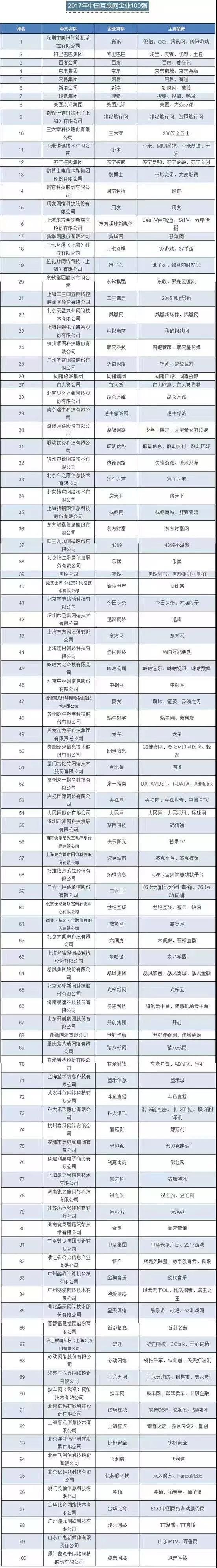 中国互联网协会、工业和信息化部信息中心在京联合发布2017年“中国互联网企业100强”榜单,32家北京企业上榜,成为中国上榜企业最多的城市。