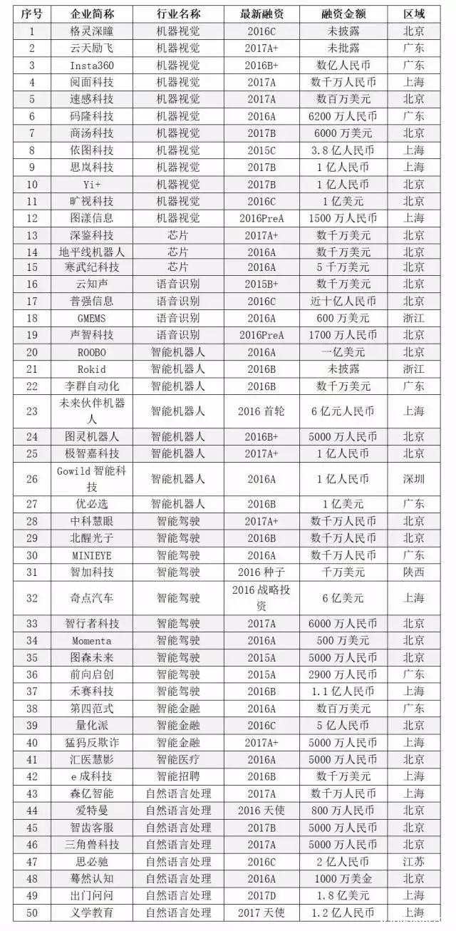 ▲2017人工智能创新公司50